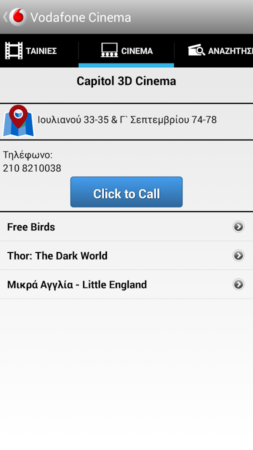 των ταινιών να διαβάσετε την κριτική για την ταινία που σας ενδιαφέρει και φυσικά να βρείτε εύκολα και γρήγορα το πλησιέστερο κινηματογράφο της αρεσκείας σας μέσα από τους διαθέσιμους χάρτες της εφαρμογής.