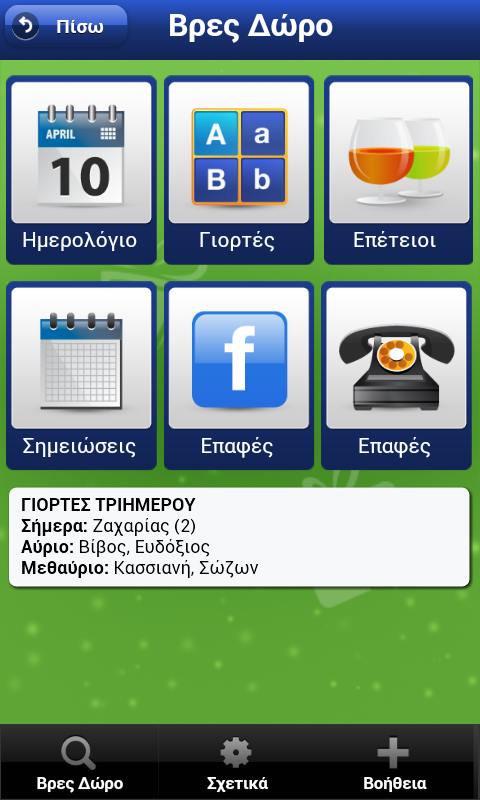 - Ειδοποιήσεις για γενέθλια/γιορτές φίλων κι επαφών σας που έχετε καταχωρημένες στο Facebook ή στο τηλέφωνό σας