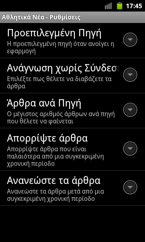 - Ρυθμίσεις όπως ο ορισμός των άρθρων ανά πηγή που θα φαίνονται.