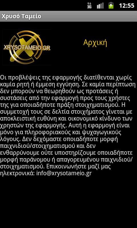 Είναι η mobile έκδοση της ιστοσελίδας xrysotameio.gr. Η εφαρμογή προτείνει στους παίκτες πιθανά αποτελέσματα αγώνων τα οποία μπορούν να μοιραστούν από το χρήστη μέσω των κοινωνικών δικτύων Facebook και Twitter.