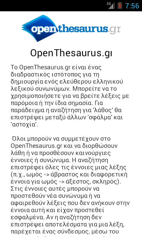 H εφαρμογή είναι ένα mini port της εφαρμογής openthesaurus