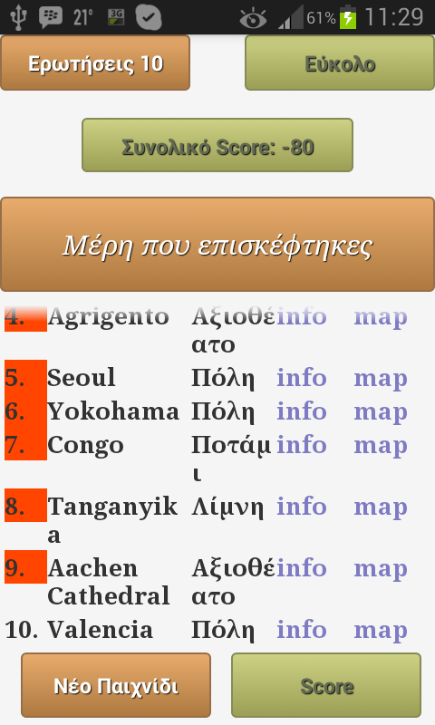 πληροφορίες στην Wikipedia σχετικά με το γεωγραφικό σημείο ενδιαφέροντος. Τέλος, υπάρχει και η δυνατότητα online σκορ για όσους θέλουν να δουν πώς είναι οι γεωγραφικές τους γνώσεις σε σχέση με άλλους παίχτες.
