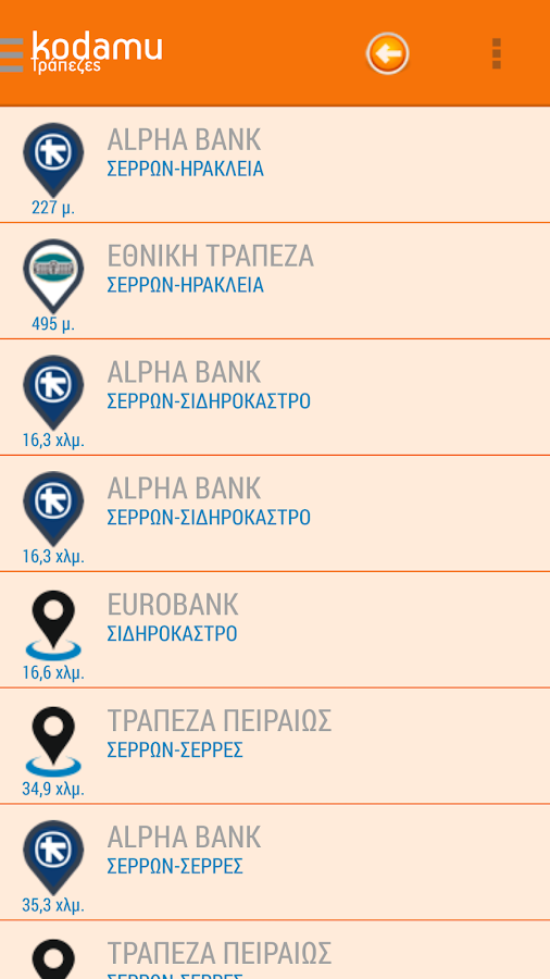 - Βάσει της απόστασης από την τοποθεσία σας (από 500 μέτρα έως 10 χιλιόμετρα)