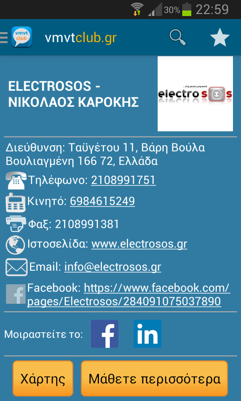 3) Μπαίνοντας στο προφίλ του επαγγελματία που επιλέξατε, μπορείτε να πατήσετε κατευθείαν στο νούμερο του τηλεφώνου για να τον καλέσετε. Πατήστε στο site για να σας ανοίξει η ιστοσελίδα του ή ακόμα δείτε το επαγγελματικό του Facebook.